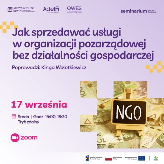 Seminarium pt. ”Jak sprzedawać usługi w organizacji pozarządowej bez działalności gospodarczej - o działalności odpłatnej pożytku publicznego”